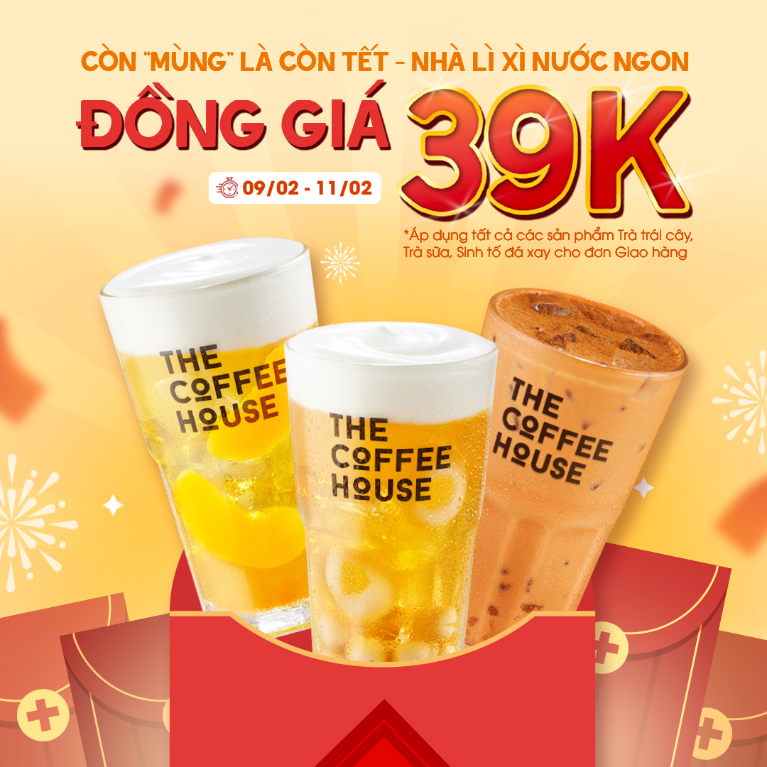 Từ ngày 09/02 - 11/02, The Coffee House mời bạn ưu đãi đồng giá 39K để team mình vui cả ngày không ngớt.